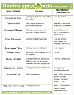 Виключно гуманітарну освіту отримало 8 урядовців, стільки ж – природничо-технічну, а п’ятеро міністрів мають диплом з обох напрямів.