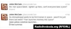 Коментуючи слова іранського президента, американський сенатор Джон МакКейн написав у своєму Twitter: «Отже, Ахмадінеджад хоче бути першим іранцем, який полетить у космос. Але хіба це не сталося вже минулого тижня?». І додав посилання на новину про те, що Іран наприкінці січня здійснив успішний запуск у космос мавпочки.