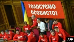 Сесійна зала парламенту залишається заблокованою, оскільки більшість відмовилася від узгодженого напередодні плану дій щодо розблокування роботи Верховної Ради. Про це на спільному брифінгу заявили лідери трьох опозиційних фракцій.