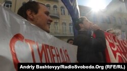 Більше ніж півсотні студентів протестували проти чергового освітнього законопроекту біля комітетів Верховної Ради на вулиці Банковій у Києві. На цей раз під удар студентських активістів потрапив проект закону, поданий групою депутатів від Партії Регіонів (Ківалов, Калєтнік, Сорока).