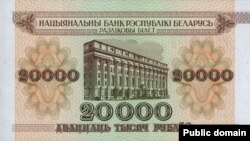 У 1994 році, коли в Білорусі до влади прийшов президент Лукашенко, купюра у 20 тисяч рублів була найбільшою. На ній зображено будинок Національного банку країни.