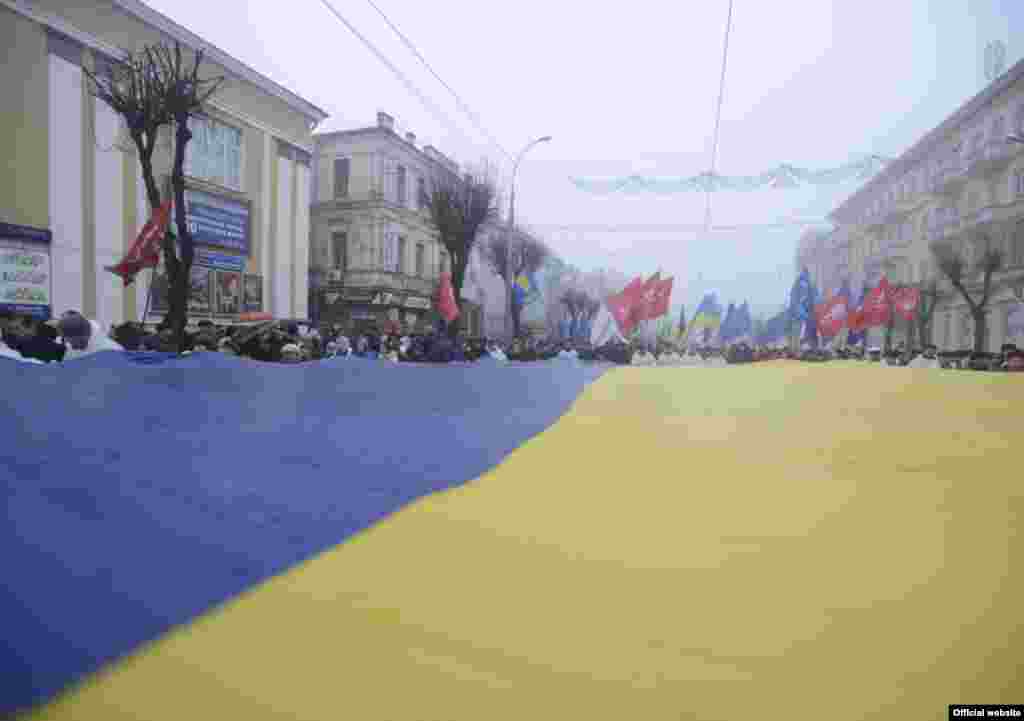 Опозиція розпочала акцію «Вставай, Україно!» з Вінниці. Головні вимоги – відставка президента Віктора Януковича та боротьба за соціальні та економічні права. Перед початком мітингу опозиціонери заявили, що в місті розповсюдили фальшиві листівки про перенесення віча. (Фотографії з сайту ВО «Батьківщина»)