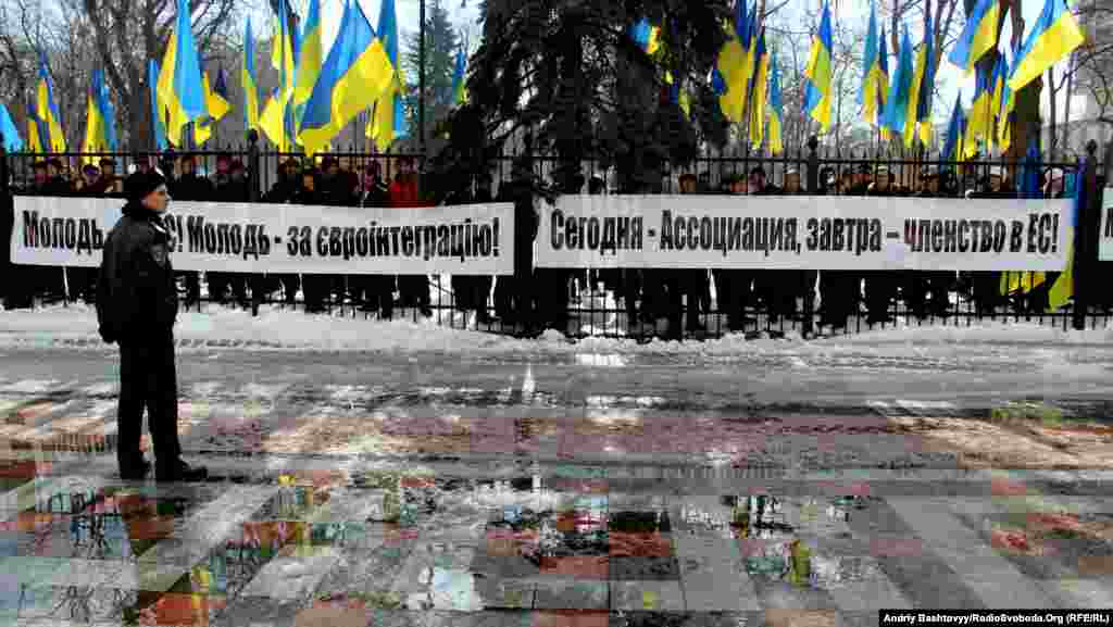 Близько тисячі прихильників «Молодих Регіонів» пікетували Верховну Раду на підтримку євроінтеграції.