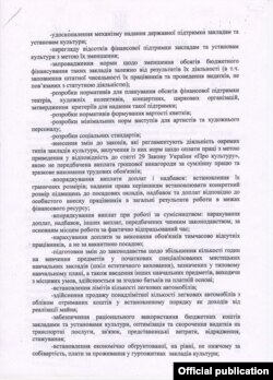 Йдеться про культурні та освітні заклади, діяльність яких радять проаналізувати «з урахуванням демографічної ситуації». У листі зокрема містяться вказівки щодо шкіл естетичного виховання (простіше – музичних та художніх шкіл): окрім підвищення плати, рекомендовано також скоротити кількість навчальних годин і збільшити навантаження на викладачів.