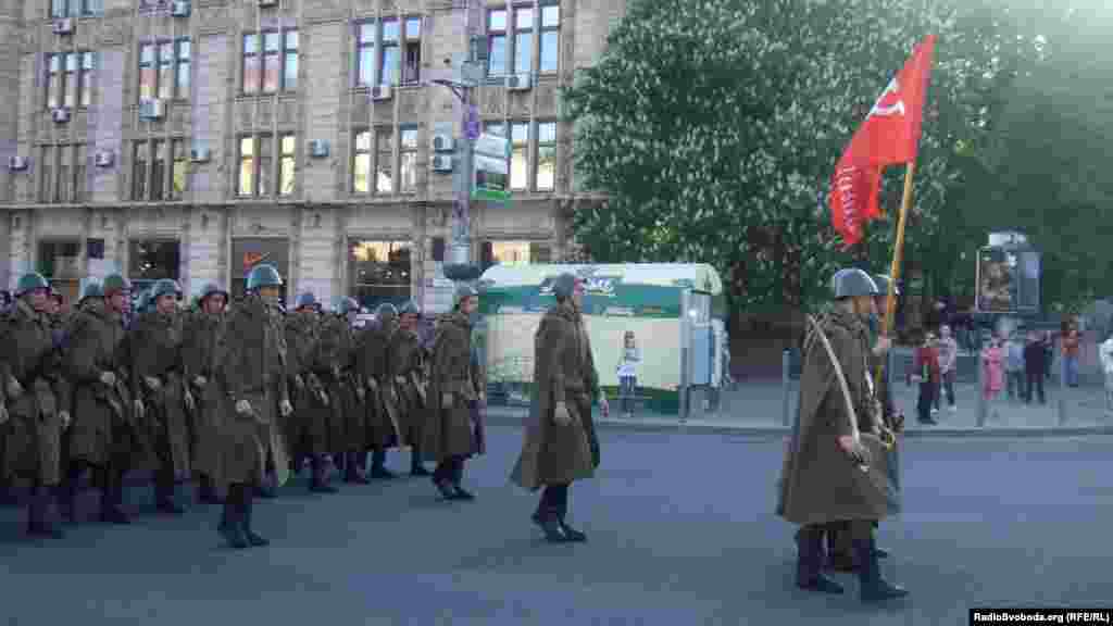 У Києві відбулася репетиція параду з нагоди Дня Перемоги, який за радянською традицією відзначається в Україні 9 травня. У ньому взяли участь військовослужбовці, вдягнуті в однострої підрозділів різних родів військ радянської армії. У параді також була задіяна техніка та озброєння часів Другої світової війни.