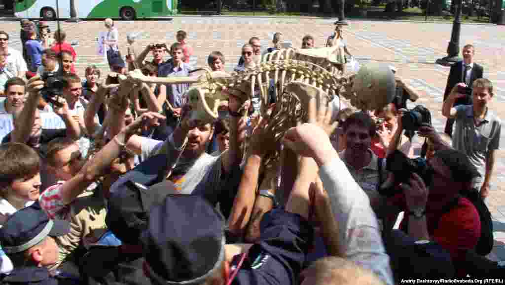 Громадським активістам не дозволяли принести реквізит для проведення акції протесту до Верховної Ради.