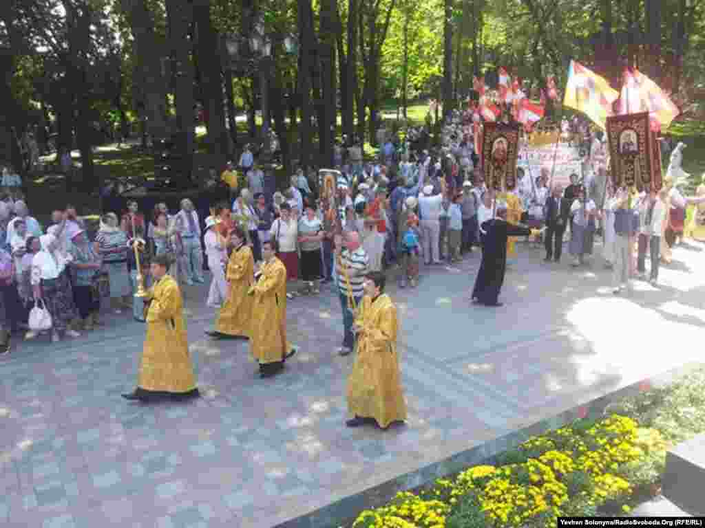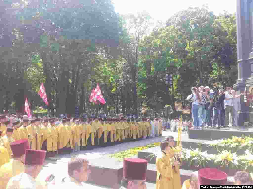 Хресна хода Української православної церкви Київського патріархату з нагоди 1025-річчя Хрещення Київської Русі пройшла в неділю від Володимирського кафедрального собору до Володимирської гірки центром Києва. Хода завершилася опівдні молебнем на Володимирській гірці, який очолив патріарх Київський Філарет.