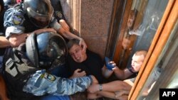 Раніше в міліції заявили, що під час сутичок під КМДА постраждав щонайменше один із правоохоронців, крім того, народні депутати Арсеній Яценюк і Андрій Іллєнко розбили вікно будівлі, де розташована Київрада.