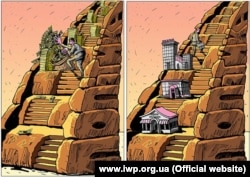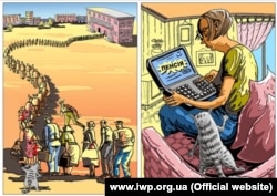 Тут зібрані карикатури, на яких зображені дві реальності – українська і європейська. Карикатури були створені відомими українськими художниками: Мариною Туровською, Костянтином Казанчевим, Ігорем Бежуком та Олексієм Кустовським на замовлення Інституту світової політики. Ми охопили максимальну кількість сфер, які наглядно демонструють, чому ми поки що не є кращою стороною Європи. Але ми можемо нею стати!