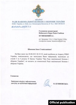 Зате офіційну відповідь надіслала Рада національної безпеки та оборони України. У листі від РНБО зазначається, що інформація про ймовірних російських шпигунів в українських спецслужбах «не входить до компетенції РНБОУ».