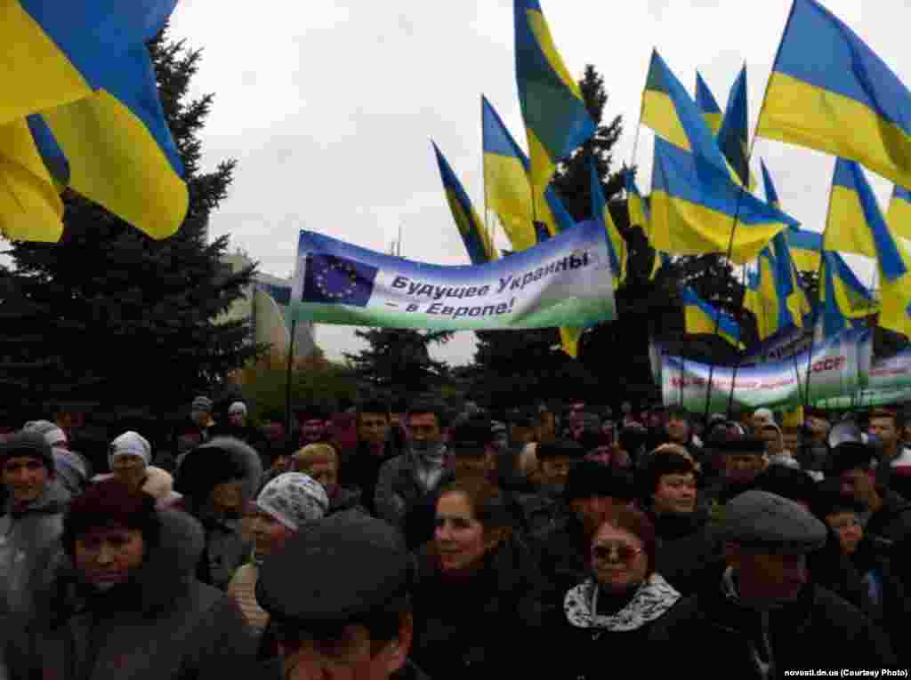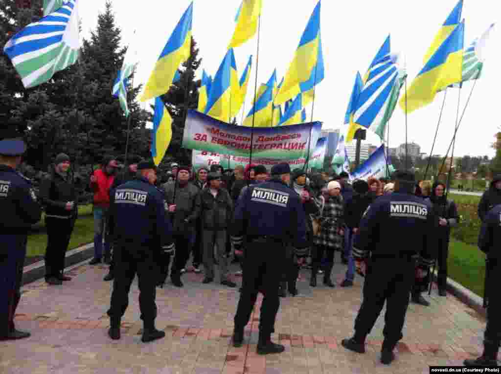 У Донецьку комуністи мітингували за Митний союз, а «Молодий Донбас» за Європу
