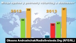 Київ – Україна за рік піднялася на 66 пунктів у рейтингу Світового банку щодо легкості старту бізнесу. Держава створила відповідні умови й значно полегшила усі формальності. Однак, вести бізнес в Україні й далі дуже важко. До тиску контролюючих органів ще додалася проблема реєстрації права власності та захисту майнових прав