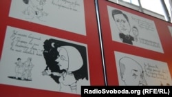 За іронією, шаржі на відомих українських політиків, також представлені на виставці, переможець конкурсу Василь Вознюк створював, коли працював на телебаченні.