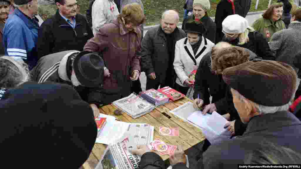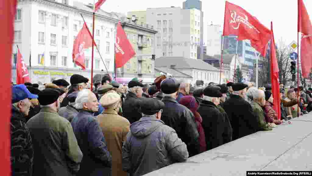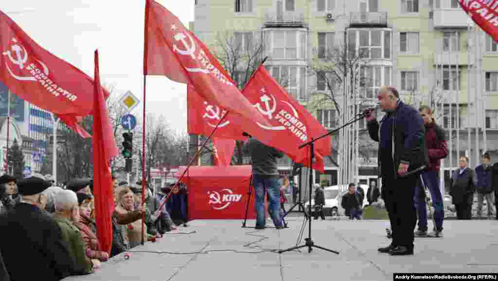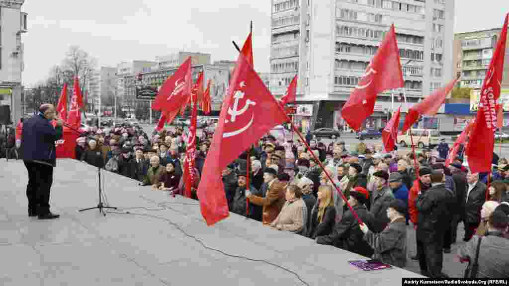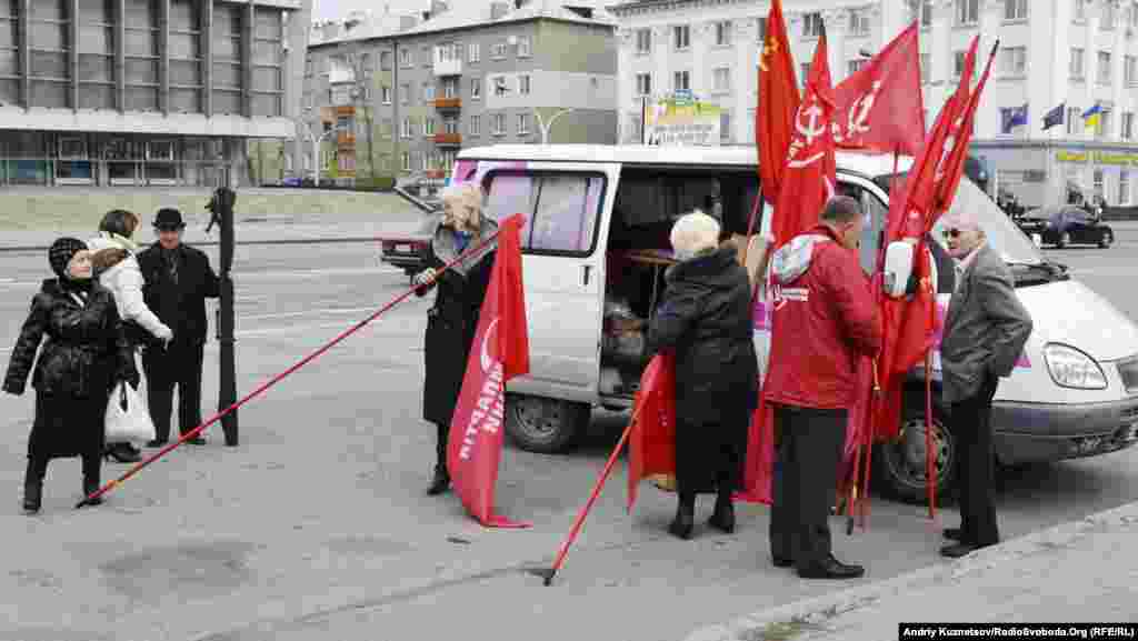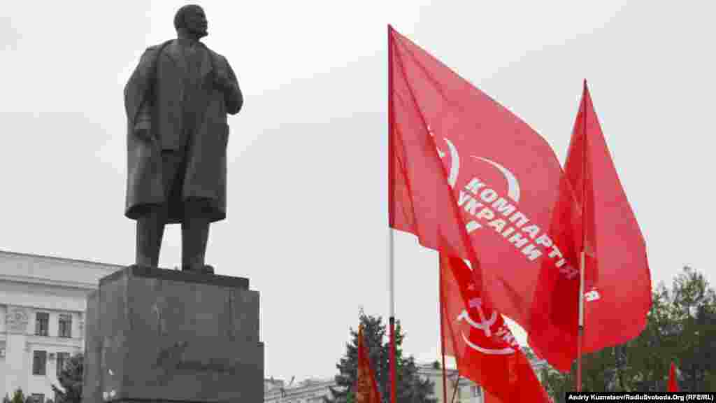 У центрі Луганська біля пам’ятнику Леніну зібралися прихильники КПУ відзначити 96-у річницю Жовтневої революції.