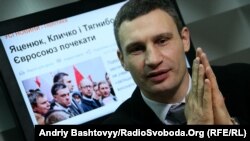 Слухачка (переклад): Пане Кличко, я у Вашій особі вітаю всю опозицію! І 24 числа обов’язково буду на майдані Незалежності і запрошу всіх своїх знайомих.