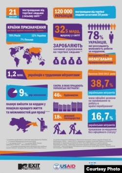 За даними Міжнародної організації з міграції, найпопулярнішими країнами призначення української робочої сили є Росія, Польща, Італія та Чехія. Однак випадки торгівлі людьми фіксують і всередині країни. Потрапити до сексуального чи трудового рабства мають однакові шанси як жінки, так і чоловіки, а дітей у такому випадку можуть змушувати до жебрацтва або використовувати як донорів органів.