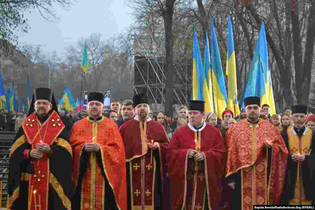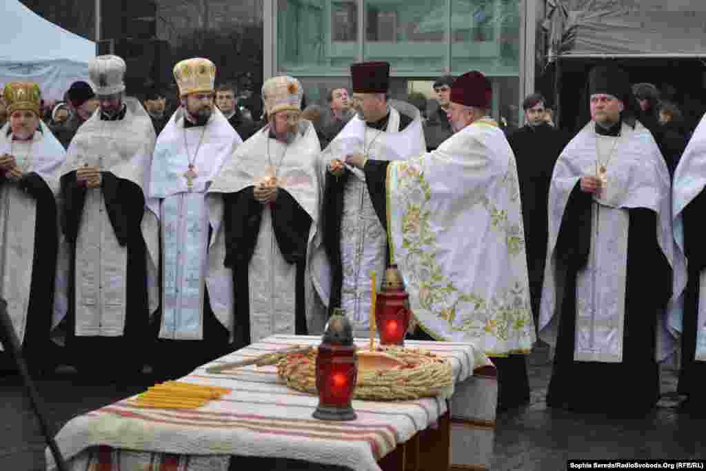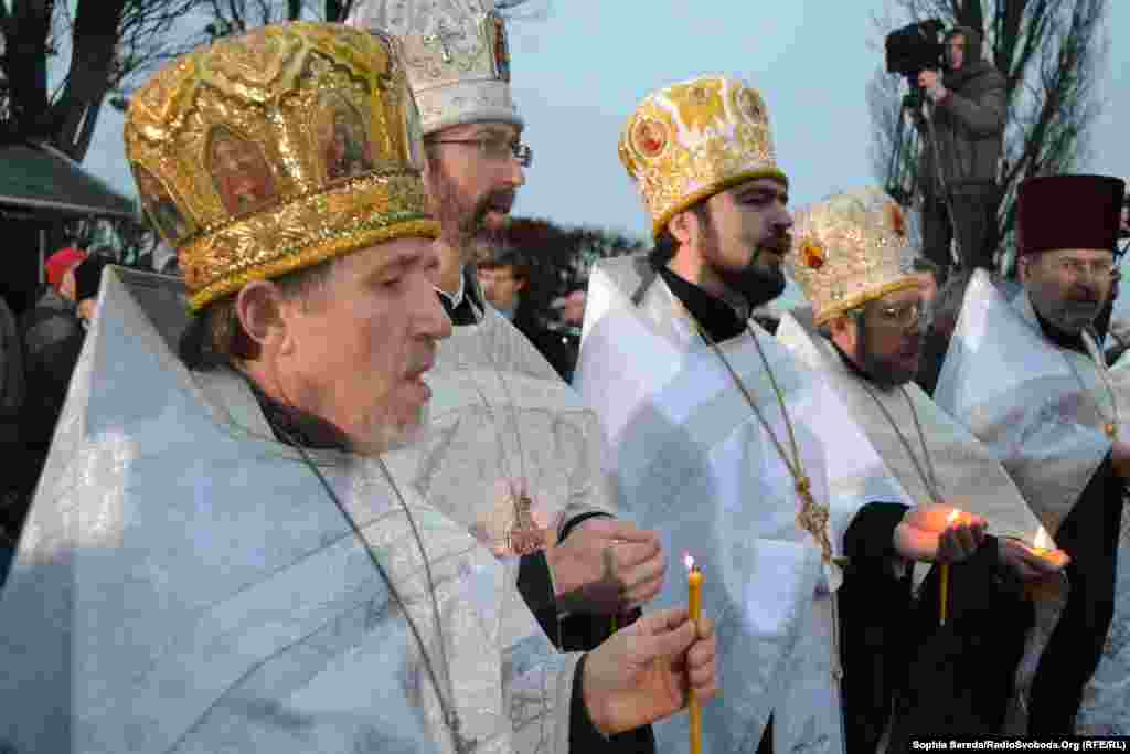 У Києві біля Меморіалу пам'яті жертв Голодомору відбувся молебень за участі представників церков, громадських діячів, політиків та громадян.