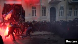 Біля адміністрації президента триває сутичка. Невідомі особи в масках намагалися штурмувати АП, пригнали сюди трактор із ковшем, кидали в правоохоронців каміння, дивові шашки. «Беркут» у відповідь застосував сльозогінний газ. Сутичка триває.