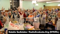 Робота кипить. Дівчата нарізають бутерброди, фрукти та постійно співають українські народні пісні. Процес завмирає лиш на мить – кухня виконує український гімн. Потім – молитва. І знову до роботи.