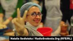 Любов Степанівна 25 років працювала в санепідемстанції на «Укрзалізниці». Тепер вона на пенсії. На кухні Євромайдану вона щодня – перевіряє усі продукти на термін придатності та якість. Відповідає за чистоту та дотримання санітарних норм. Звісно добровільно.