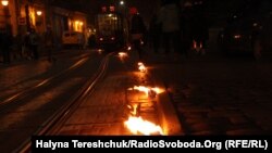 Після того, як смолоскиповий марш пройшовся центральною частиною, на дорогах міста залишились десятки запалених елементів смолоскипів, які машини обережно об’їжджали. Бо бракувало найменшої краплі палива до пожежі. Уся зупинка на Підвальній, що у центрі, була у розкиданих вогнях від факелів. Щоби трамваї проїжджали, працівник ЛКП ретельно стежив. Біля вогню стояли дітлахи і його переступали пасажири, щоб сісти у трамвай.