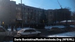 Черкащани вже кілька годин стоять біля будівлі суду в очікуванні рішень. Наразі там перебувають близько двохсот осіб. Вони гріються біля вогнища, яке розпалили у бочці, і мають запас дров.