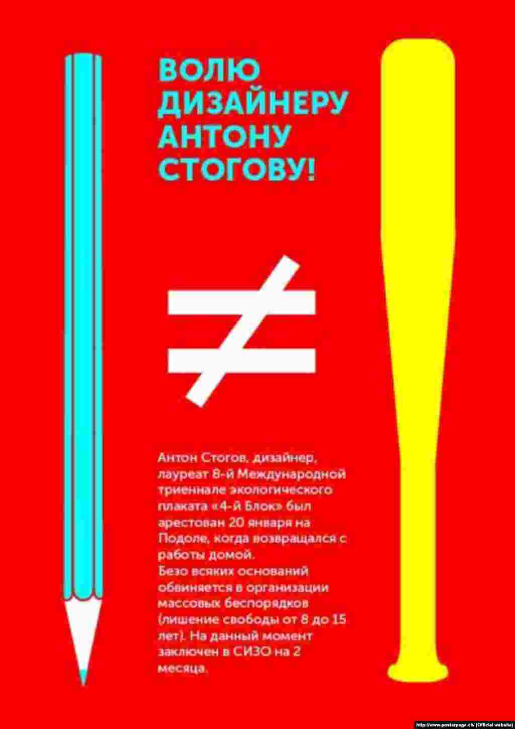Дизайнери всього світу розробили плакати на підтримку затриманого колеги киянина Антона Стогова (взято з сайту www.posterpage.ch)