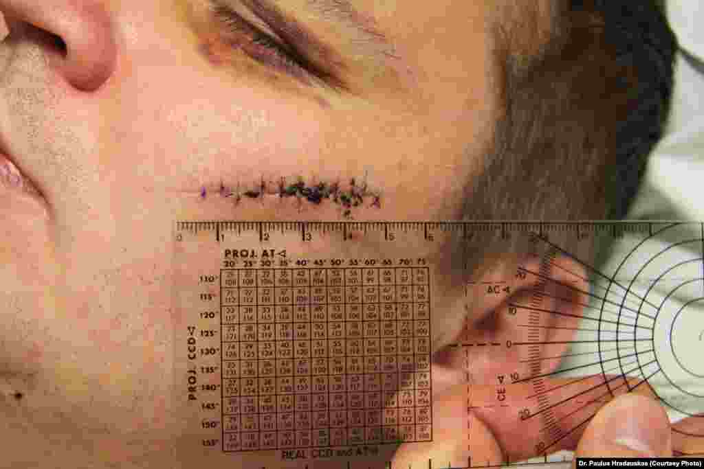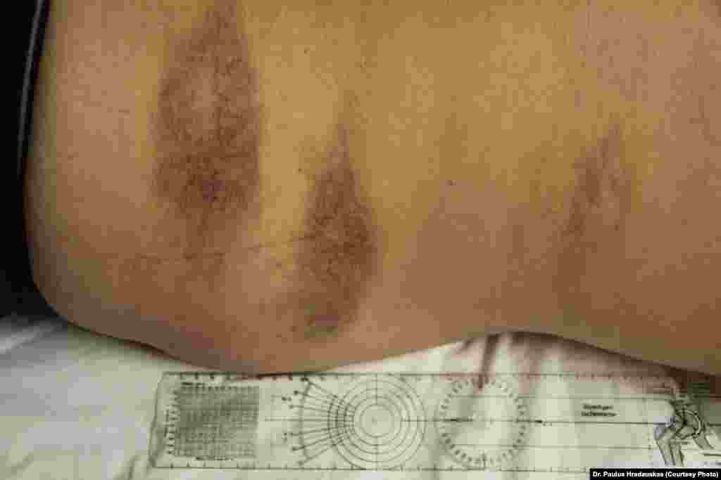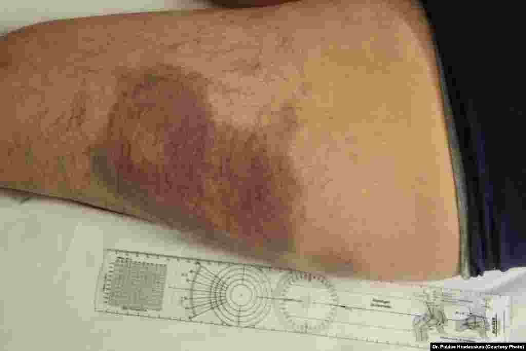Фотографії побоїв на тілі одного з активістів Автомайдану Дмитра Булатова, Вільнюс, 5 лютого 2014 року (фотографії зроблені лікарем Булатова Паулюсом Градаускасом)