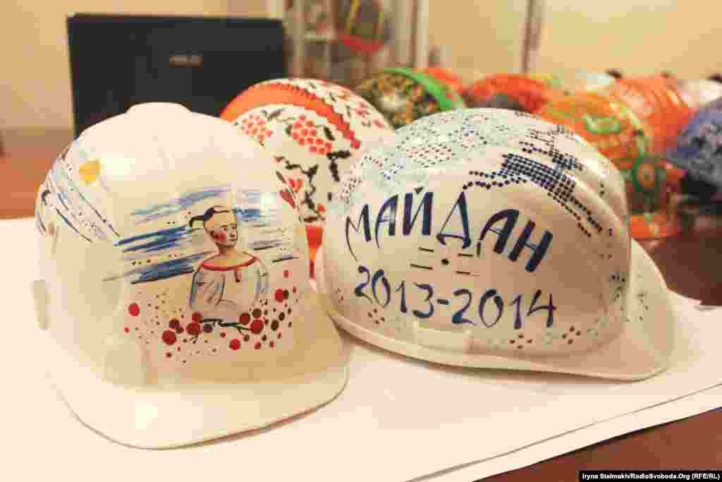 Понад сто будівельних шоломів за два місяці розмалювали художники на Євромайдані.