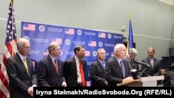 Делегація з восьми сенаторів, що перебували в Києві з 14 по 15 березня, стала найбільшою американською делегацією, яка коли-небудь приїжджала в Україну. Впродовж свого дводенного візиту до Києву вони зустрілися з багатьма представниками української влади, зокрема з виконувачем обов’язків президента Олександром Турчиновим, прем’єр-міністром Арсенієм Яценюком, з представниками Партії регіонів та головою Донецької обласної державної адміністрації.