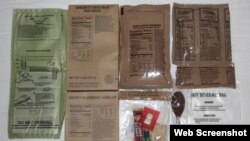 Одна коробка американських сухих пайків MRE вміщує 12 різних обідів, термін придатності яких (навіть за високої температури) становить 3 роки. Щороку меню модифікується. Виготовляють ці сухі пайки спеціально для американської армії і формально їхній комерційний перепродаж є незаконним, однак реально придбати їх можна в інтернеті.
