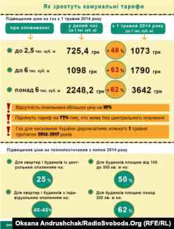 За даними Національної комісії з регулювання енергетики, пересічний українець сплачує мінімум 72 з половиною копійки за кубометр газу (за наявності лічильника). Після 50-відсоткового підвищення ціни мінімальний тариф становитиме приблизно 1 гривню.