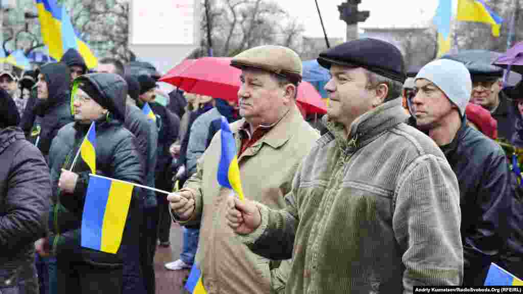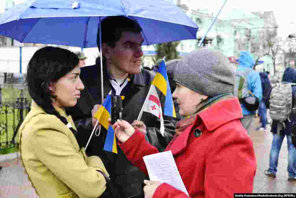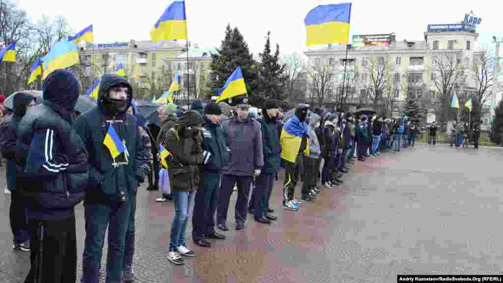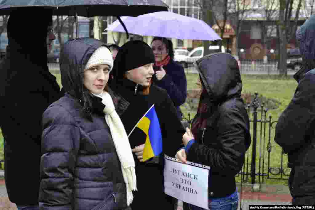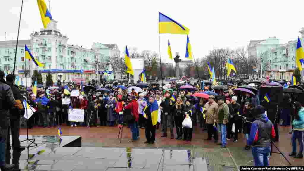Біля пам’ятника Тарасу Шевченку у Луганську проукраїнські сили провели мітинг за єдність України, який зібрав кількасот людей.