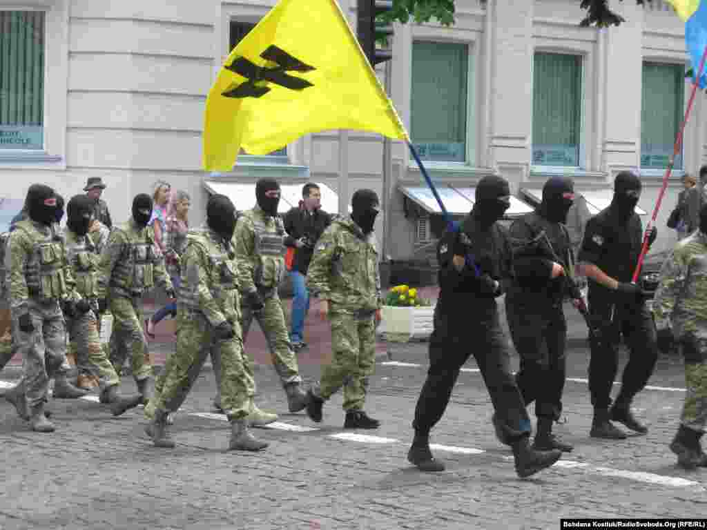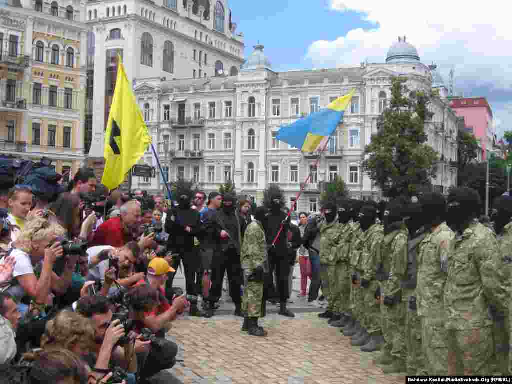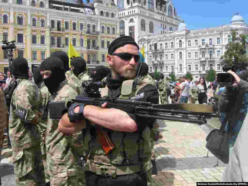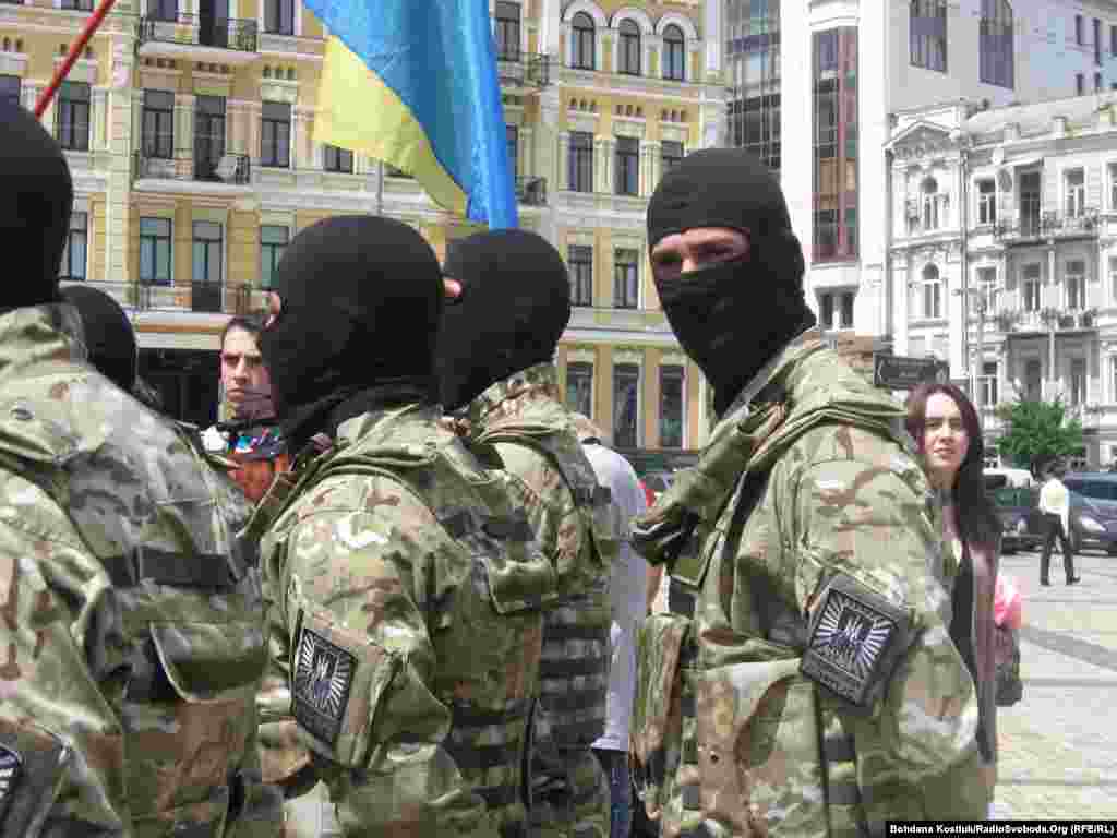 У Києві присягу на вірність Україні склали бійці третьої сотні роти добровольчого батальйону «Азов». Цей батальйон сформовано у травні цього року як роту спеціального призначення Міністерства внутрішніх справ України, склад – триста осіб. Батальйон «Азов» бере участь в антитерористичній операції на Сході України, його бійці звільняли від сепаратистів місто Маріуполь.