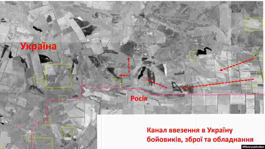 Супутникова фотозйомка кордону між Донецькою областю (Україна) та Ростовською областю (РФ), липень 2014 року (Інформація СБУ)