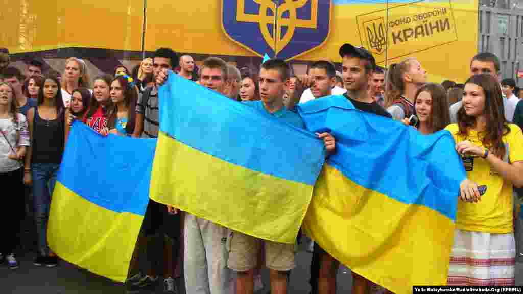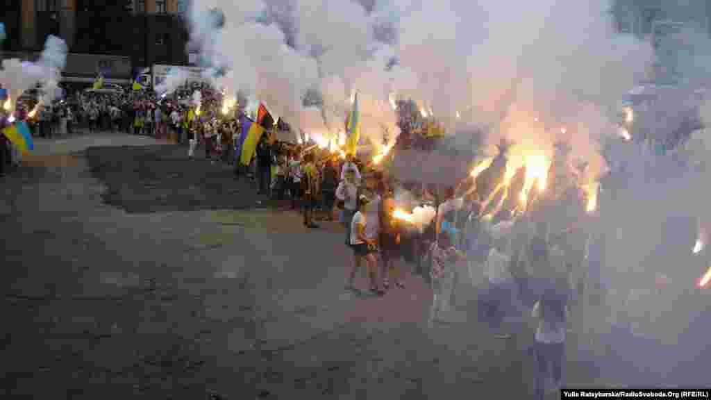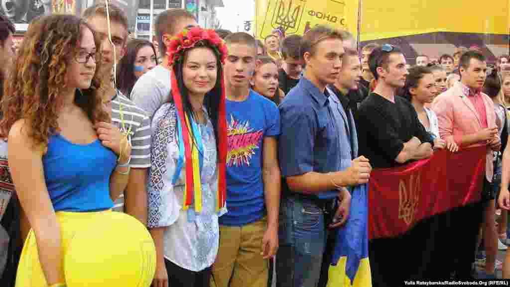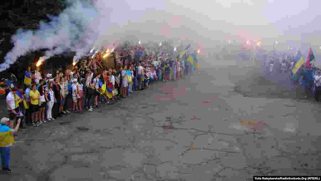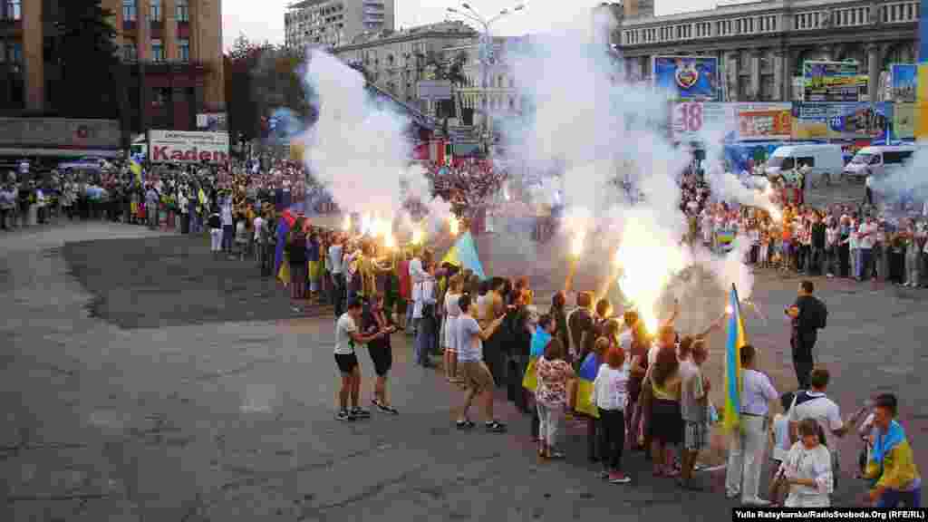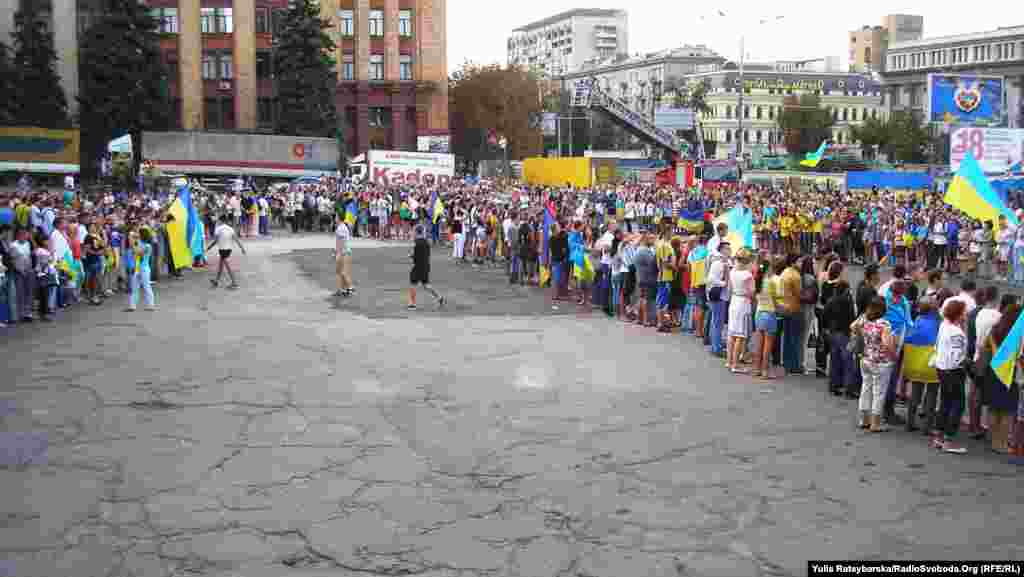 У Дніпропетровську на площі Героїв Майдану тисячі жителів міста створили «живий» тризуб. Учасники акції намалювали крейдою на асфальті контури тризуба й вишикувались у кілька шеренг. Знак українського герба зайняв практично всю площу Героїв Майдану. За командою організаторів учасники запалили фаєри й почали скандувати «Слава Україні», «Герої не вмирають».