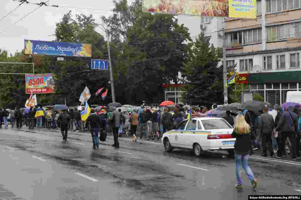 Близько тисячі мітингувальників пройшлися містом з гаслами «Вимагаємо підмогу Іловайську!», «Зброю батальйонам!», «Підтримай батальйони або знімай погони!».
