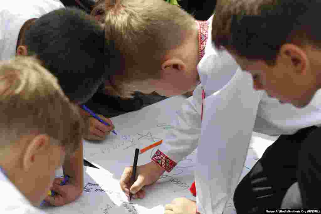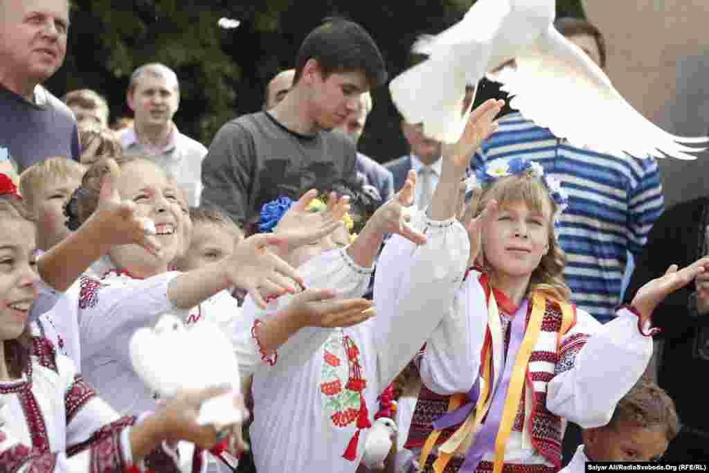 У Києві біли пам'ятника жертвам тероризму діти запалили лампадки, поклали квіти та випустили голубів, щоб вони принесли мир на нашу землю. Цього дня виповнилось 13 років від терористичного акту в США 11 вересня 2001 року.