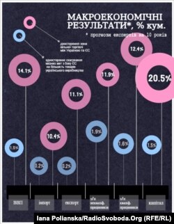 Втім, цікавішою для України, на думку експертів, була саме економічна складова угоди. Раніше передбачалось, що ратифікація, тобто інтегрування міжнародного документа в національне законодавство, мала запустити в дію важливий економічний механізм: зону вільної торгівлі між Україною та ЄС.