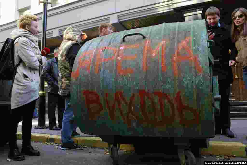 Активісти поставили сміттєвий бак із надписом «Ярема, виходь!». Відомство охороняє спецпідрозділ Міністерства внутрішніх справ і полк міліції. Лідер Автомайдану Сергій Коба пообіцяв, що автомайданівці навідаються до Яреми додому.