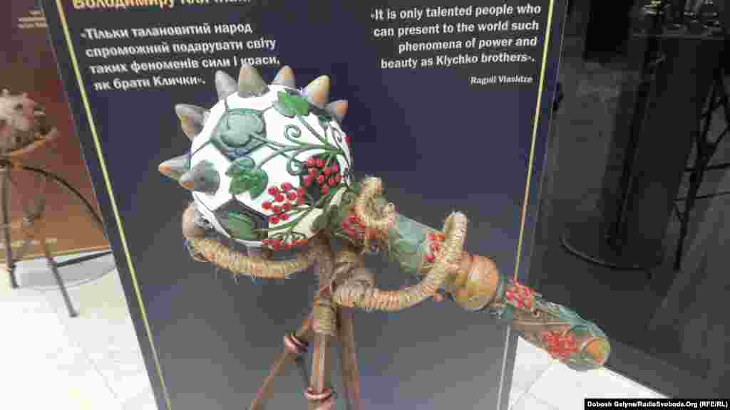 В Івано-Франківську відкрилася виставка ексклюзивних авторських булав «Люди, які творять епоху» грузинського драматурга, сценариста, актора, письменника Рагулі Власідзе, який нещодавно отримав українське громадянство. Представлені 24 керамічні булави довжиною 70 сантиметрів, вагою 5–6 кілограмів. Булави розміщені на металевих кованих підставках, виготовлених івано-франківськими ковалями. Кожна має свою назву, присвяту і афоризм від автора – на спеціальних триметрових банерах вміщені фото дівчат в українських вишиванках, які тримають булави. За словами Рагулі Власідзе, в його роботах булава – не зброя, а символ духовної сили і любові. «Мої булави розповідають не тільки про мистецтво, про спорт, про футбол, вони розповідають про історію, про традиції, культуру і духовні цінності українського народу – таким чином я намагався через творчу призму, від грузинського серця висловити свою любов до українців», – сказав автор булав.
