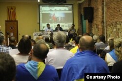 Із відео, записаного у той день, видно, що на столі лекторів прикріплене гасло «Солідарність з антифашистським Донбасом». За їхніми спинами – екран, на якому час від часу з’являються Ігор Коломойський, Петро Порошенко, чоловіки у військовій формі, прапори угруповань «ДНР» та «ЛНР». Лектори говорять із аудиторією каталанською, розповідаючи, що вони виступають проти капіталістів та Америки, а також координують «антифашистську діяльність» в Іспанії. Спікери висловлюють свою солідарність із так званими «республіками Донбасу».