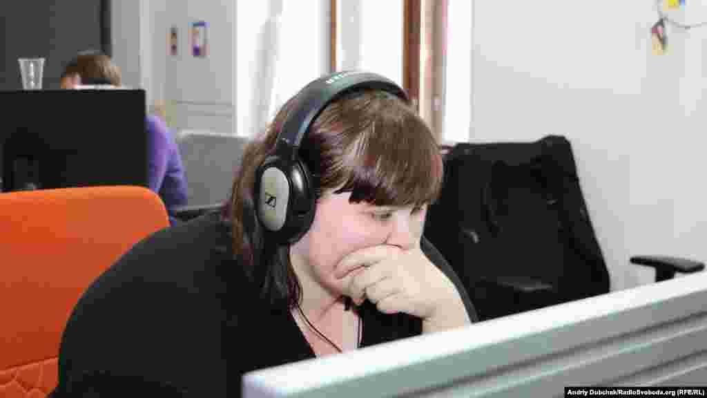Журналіст Радіо Свобода Ірина Штогрін пояснює учасникам школи принципи підготовки інформаційних матеріалів
