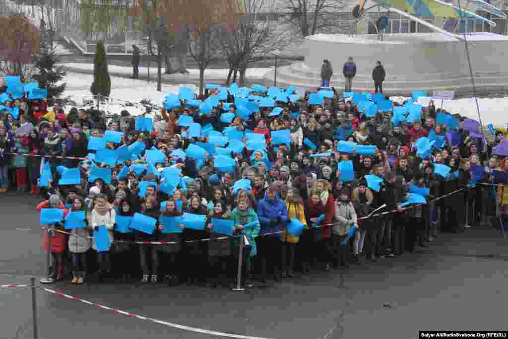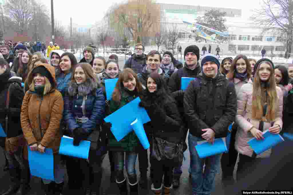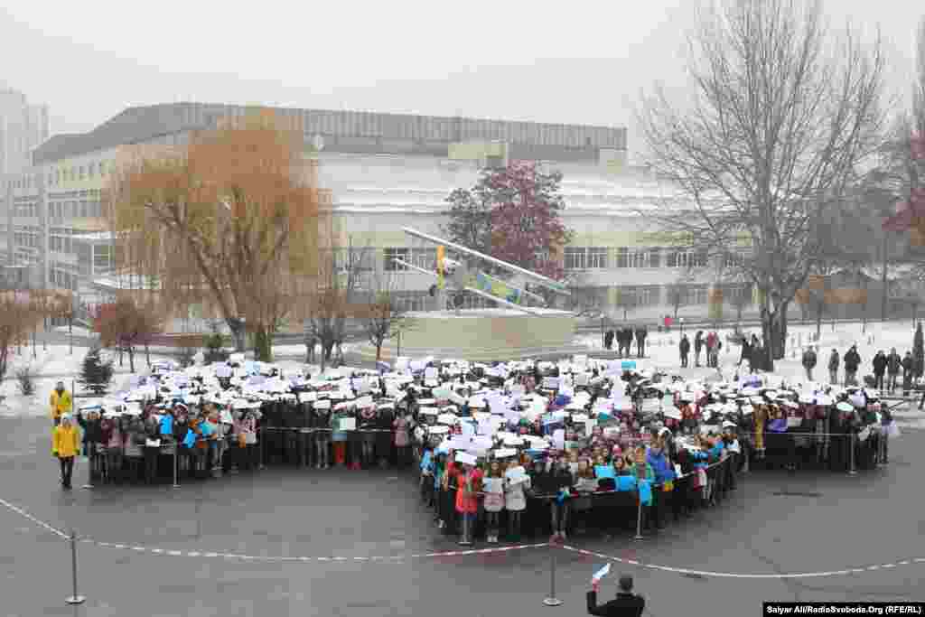 Студенти одночасно вишикувалися у формі «живих» літаків на територіях авіаційних вузів у Києві та Харкові, це зафіксували представники Національного реєстру рекордів. Новий рекорд України – «Зображення двох літаків за допомогою найбільшої кількості людей» становить 1579 осіб.