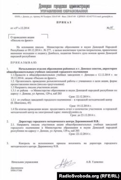 Акція «Листи на фронт» триватиме з 12 по 19 грудня, «деенерівські» директори шкіл, згідно з наказом, повинні «провести роз’яснювальну роботу з учнями» і надати листи у формі трикутників у «Міністерство освіти і науки ДНР». У листах, згідно з наказом «міністра», повинні бути «новорічні привітання» і «теплі слова»… Тобто готується гідне поповнення батальйону «Восток»?