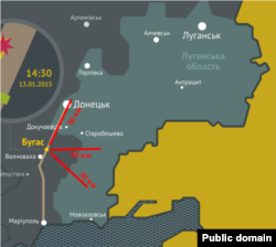 Ватажок угруповання «ДНР», яке в Україні визнане терористичним, Денис Пушилін заявив, що від місця трагедії під Волновахою, а саме від населеного пункту Бугас до артилерії бойовиків «ДНР» щонайменше 50 кілометрів. Таку інформацію спростовує боєць батальйону «Київ-2».