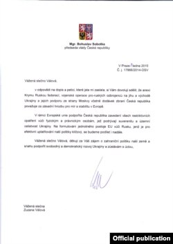До прем'єра з проханням пояснити ставлення до подій в Україні листом зверталася 17-річна студентка Зузка Валова, наймолодша активістка празького Майдану.