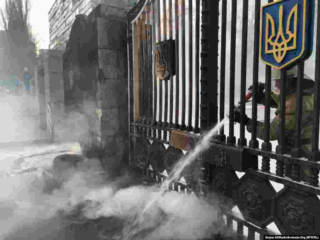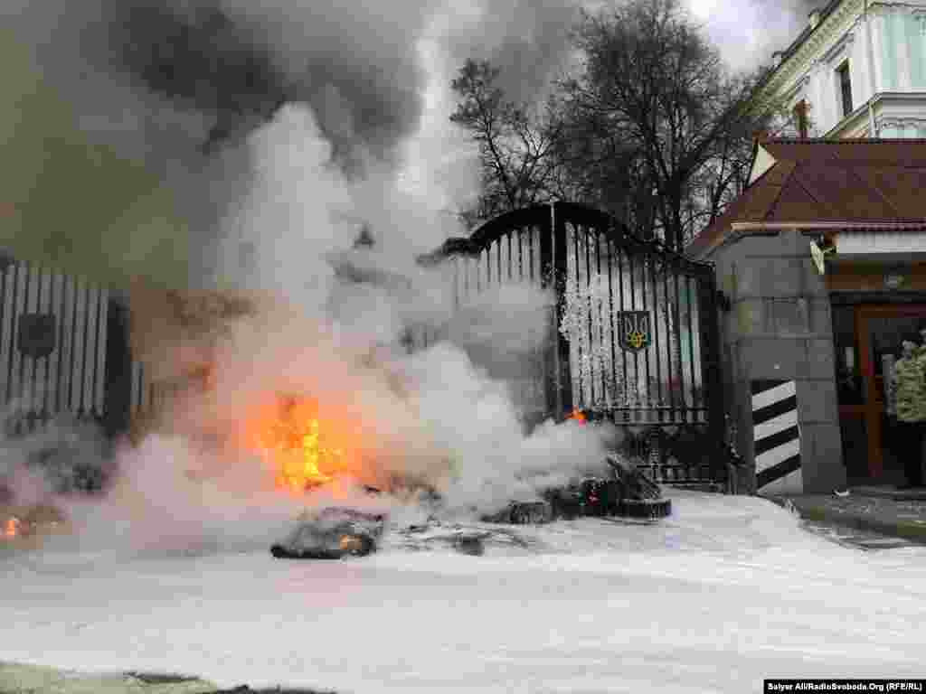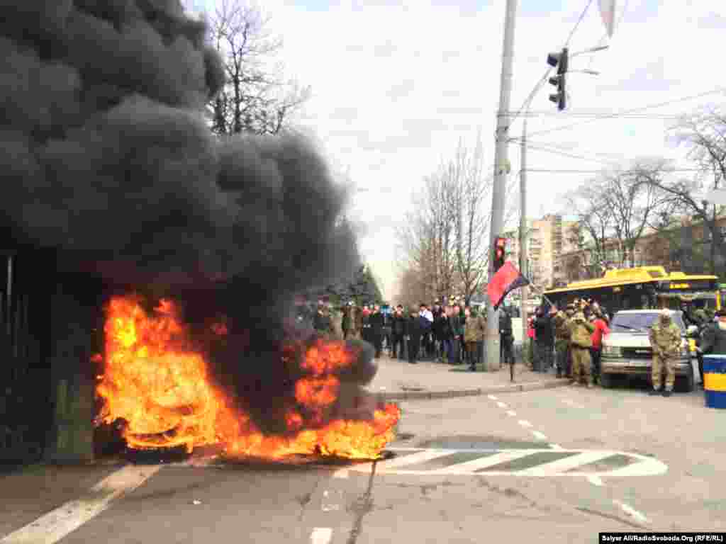 Другого лютого люди у військовій формі, які називають себе бійцями батальйону «Айдар», пікетували Міноборони і палили шини.