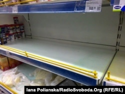 Охоронець супермаркету додав: таку паніку спостерігає вже кілька останніх днів. Каже, що чув від покупців: скоро «цукор та масло будуть по 20 гривень», от люди і запасаються.