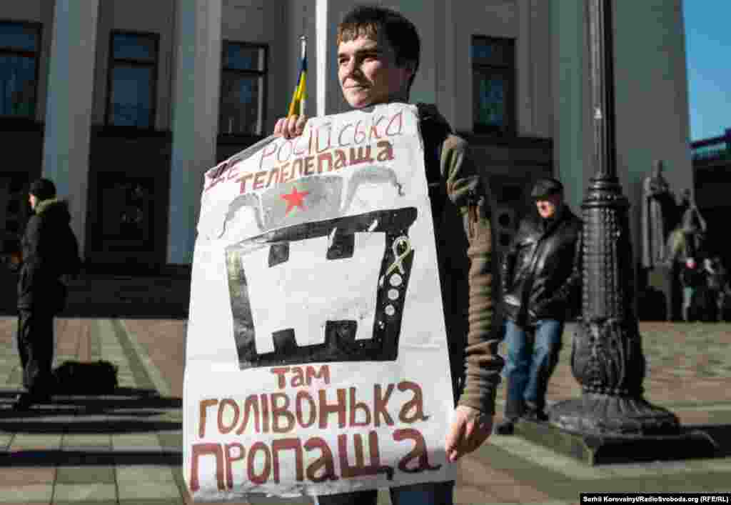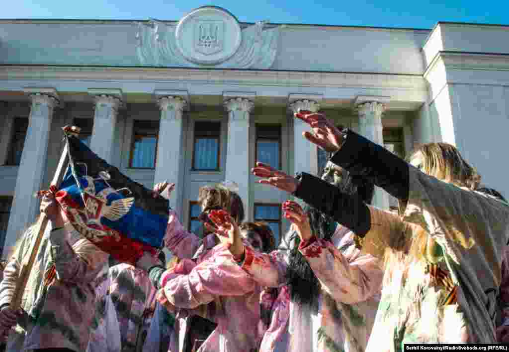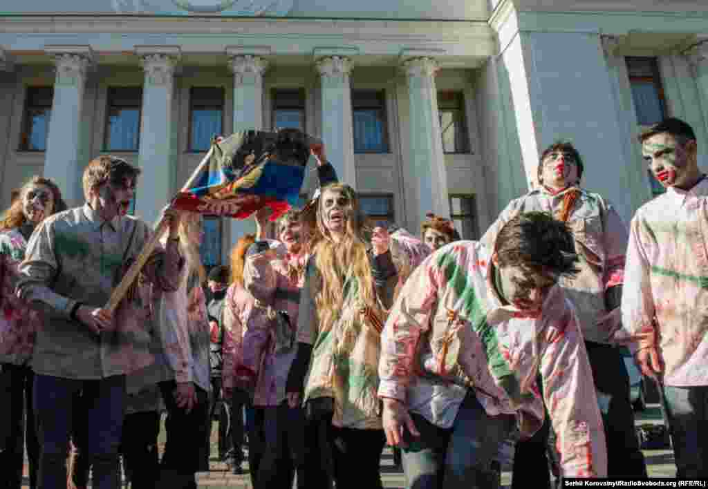 Біля Верховної Ради відбулась акція «Зомбі вимагають від Гройсмана не підписувати закон про заборону російської телепропаганди». Активісти громадянського руху «Відсіч», волонтери та небайдужі громадяни прийшли до голови Верховної Ради Володимира Гройсмана з вимогою негайно підписати Закон №1317 «Про внесення змін до деяких законів України щодо захисту інформаційного телерадіопростору України», який має суттєво обмежити показ ворожих російських фільмів.